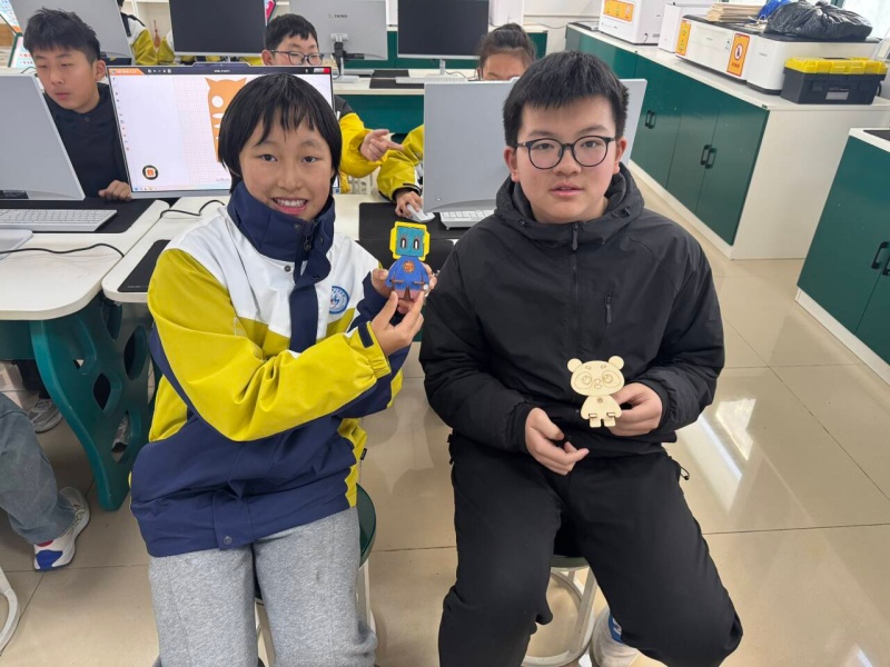 装备焕新的同时,下学期激光雕刻课程的升级规划也同步完成,力求让新设备优势与课程内容深度融合。在小学段,除了经典的“愚公移山”汉诺塔模型课程将借助新设备实现更精准的设计与雕刻外,还研发了结合传统文化与科技创意的“激光雕刻非遗纹样”课程——学生可利用流畅的电脑设计软件还原剪纸、木雕等非遗纹样,再通过高精度的激光切割机将纹样复刻在木质板材上;初中段新增“智能摆件设计与制作”课程,依托新电脑的强大算力,学生能完成更复杂的三维结构设计,搭配高精度激光切割技术,制作出兼具实用性与创意性的智能摆件。
