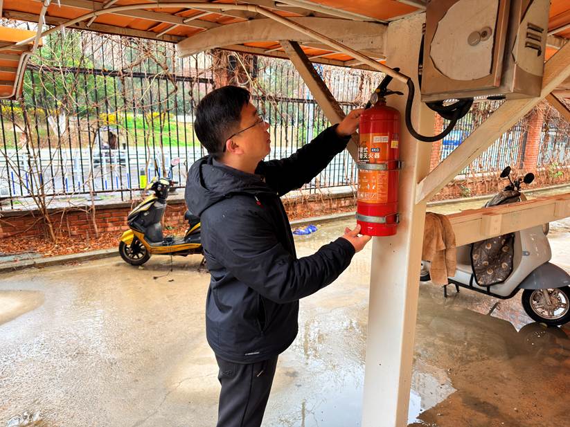 3月1日,总务处胡俊峰主任、苏黄修主任,体育组王鑫睿、曹全老师开展开学前安全大检查。检查组重点对校舍护栏、消防车棚、体育活动设施进行逐项查验,细致核查理化实验室危化品保管、存储与使用规范,对排查出的问题逐一登记建档,明确整改时限与责任人,确保所有隐患在开学前清零到位。