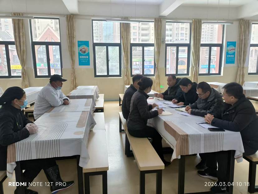 3月4日,学校召开食品安全食堂现场办公会,胡茂侠书记、何钧校长亲临参会。校领导对过去一年食堂经营方的工作给与充分肯定,希望大家再接再厉,保质保量食品供应,确保食品安全。会后,校领导深入食堂后厨,对食品采购、加工制作、餐具消毒、食品留样及环境卫生等关键环节进行实地检查,严守师生“舌尖上的安全”。