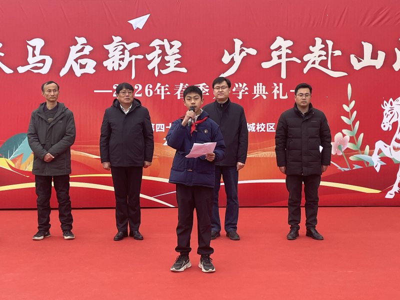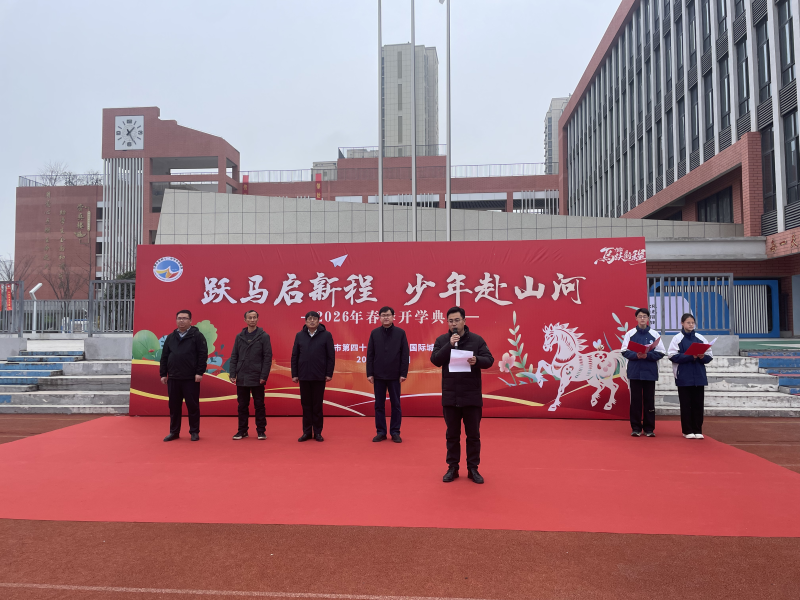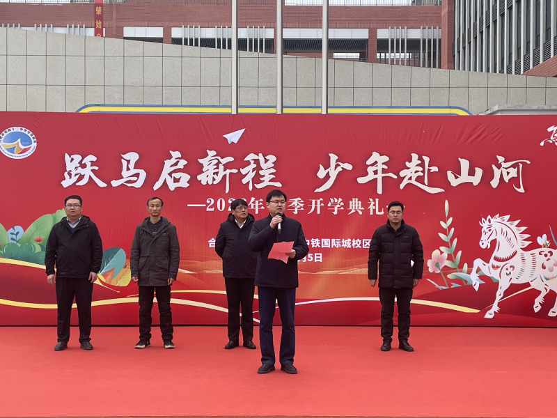 惊蛰至,万物苏,春风浩荡启新程;丙午岁,马蹄疾,少年意气赴山河。3月5日,合肥市第四十二中学中铁国际城校区全体师生齐聚操场,举行以“跃马启新程 少年赴山河”为主题的2026春季开学典礼。校领导武江义、高峰、葛金灿、张高出席,开学典礼由七(3)班马郡楚、八(1)班李谷一主持。