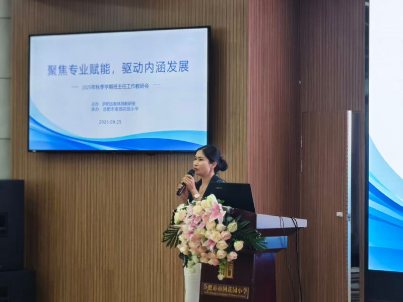 会议的第三项内容,由庐阳区班主任兼职教研员朱丽丽进行工作汇报。她回顾了2025年春季学期班主任工作的成果与亮点,同时明确了新学期的工作目标与重点任务,为全区班主任工作的开展指明了方向,激励大家在新的学期凝心聚力,再创佳绩。