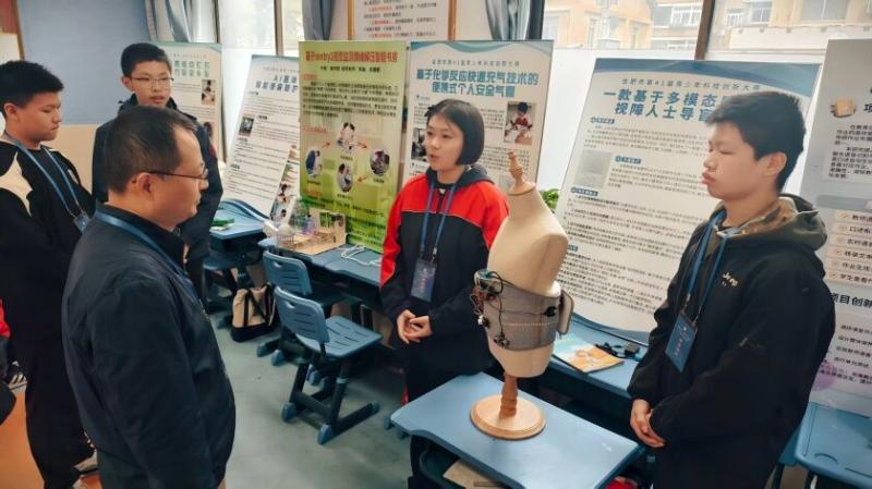 比赛过程中,参赛选手们通过精心布置的展台、流畅的现场讲解以及机智的答辩环节,全方位展示了他们的项目构思、研究过程与创新价值。他们自信从容地阐述科学原理,条理清晰地回应评委与参观者的提问,充分展现了当代青少年良好的科学素养、卓越的表达能力与团队协作精神。本届大赛延续高规格评审传统,特邀来自中科院、合肥工业大学、中国电子科技集团公司第三十八研究所及合肥通用机械研究所的专家学者组成评审团,他们不仅对项目进行了专业评审,更与孩子们亲切交流,给予精准点拨与发展建议,助力青少年科技创新梦想扬帆远航。