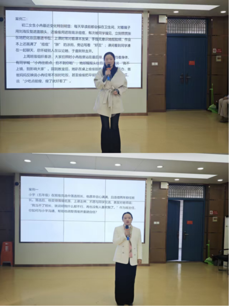 为将理论转化为应对真实教育情境的能力,工作室采用情境模拟的方式,将所学心理学、班级管理理论应用于家校沟通、危机干预等模拟场景中。通过角色扮演与案例解析,深入探讨班主任工作中的热点和难点问题,并寻求有效的教育策略。合肥市南门小学的谢文静老师与合肥市45中学橡树湾校区的李蕾老师,围绕问题定位、成因分析及解决策略进行了深度剖析,为现场教师提供了可直接借鉴的教育实践范例。