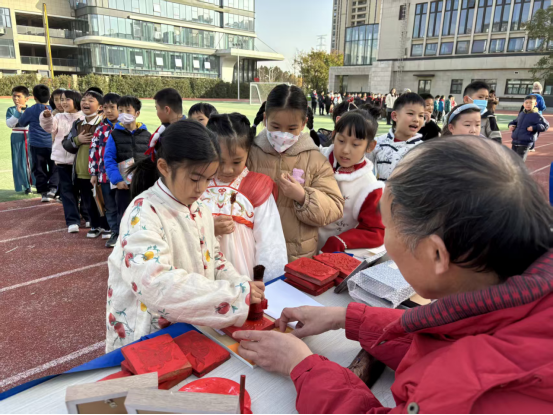 本次活动内容丰富,精彩纷呈。其中,技艺互动环节是本次活动的亮点。操场上设置了八大非遗项目体验区,包括庐阳糖画(韩正友)、庐州木版水印(王泽龙)、庐州吹糖人(康夫利)、庐州面塑(杨俊生)、庐阳剪纸(葛从云)、庐阳花布(蔡传龙)、庐州刺绣旗袍制作(方玉梅)以及庐阳字画(殷汉高)。学生们在传承人的指导下亲手体验制作过程,零距离感受非遗技艺的精妙,现场气氛热烈。