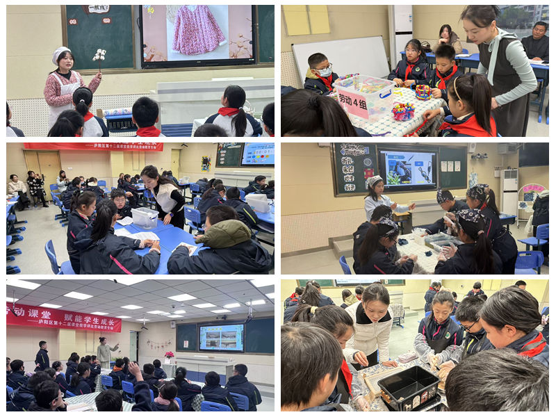 上课环节,六位参赛教师各展所长,带来了风格迥异却同样精彩纷呈的劳动教育课程。《指尖上的穿穿编编》引导学生们走进传统编织的世界,《星星的风筝》将劳动教育与爱心传递紧密结合,《编,编,编花篮》,充分展现劳动中的合作精神与创新思维,《蓝色之美:扎染承古韵,劳动育匠心》和《“香”遇传统,“劳”记传承——线香制作》让孩子们感受到传统技艺的神奇,《走近一根“线”》更是让学生们体验到劳动成果的来之不易。
