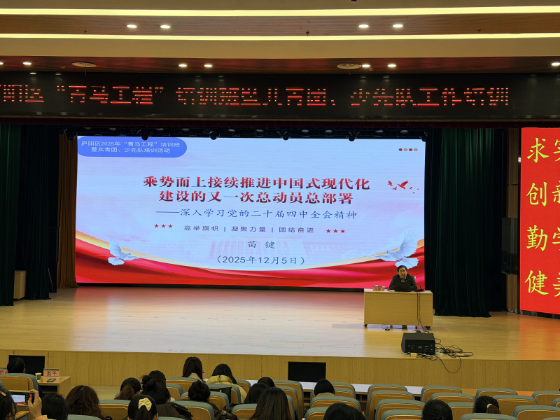 为深入学习贯彻党的二十大精神,全面落实《中共中央关于全面加强新时代少先队工作的意见》,持续提升团队工作者的政治素养与履职能力,2025年12月5日,由庐阳团区委、庐阳区教体局、庐阳区少工委联合组织的庐阳区“青马工程”培训班暨共青团、少先队工作培训及述职评议会议在合肥市南门小学森林城校区顺利举行。本次活动旨在进一步强化全区教育系统共青团、少先队工作者的政治引领力、业务执行力和组织凝聚力,搭建互学互鉴、共同成长的交流平台,积极探索新时代背景下团队工作的创新路径与实施方法,为推动区域德育工作和青少年思想政治引领奠定坚实基础。全区中小学、幼儿园共青团、少先队工作负责人及中队辅导员代表260余人参加了培训。庐阳区教体局副局长娄平、庐阳团区委副书记王若岚出席培训。