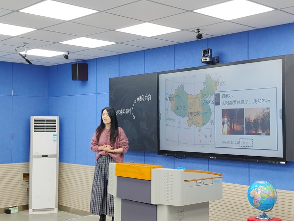 下午四位教师就《中国的人口与民族》展开教学展示。徐礼芳老师以一家三代的人口变迁为线索,借助数字人技术还原不同时期的生活场景,引导学生理解人口政策与国情发展的适应性,领会人口与资源、环境协调的重要性;姜文倩老师以国家育儿补贴政策导入,通过“图”说变化、“数”说分布等环节,帮助学生认识我国人口的数量特征、空间格局及胡焕庸线的成因;赵倩老师以全国人口普查视频引入,让学生扮演国情数据观察员,通过数据分析与小组探讨解读人口变化与分布规律;张朝奇老师从家庭成员调查表出发,由家到国,引导学生理解中国人口的数量演变与分布特点。四位教师均注重国情教育,帮助学生树立科学的人口观念,深化对国家发展的认识。