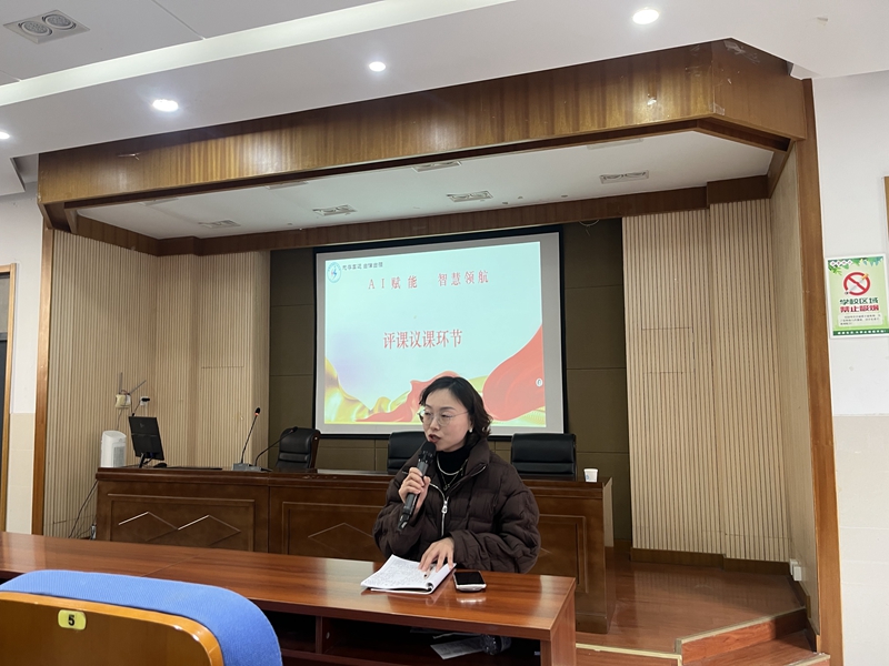 评课环节,42中铁校区李艳老师、45中刘慕智老师、42中费翔楼老师以及闻讯前来观摩的168中学张雨涵老师进行了精彩的点评,大家从跨学科融合、课程设计的立意和素养的达成、课堂驾驭能力、Ai赋能改变教育生态等谈了自己的真知灼见。