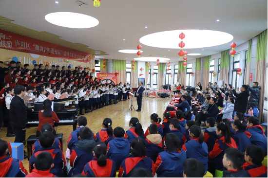 冬日暖阳洒满校园,和声悠扬浸润童心。2025年12月24日上午,由合肥市庐阳区教育体育局、合肥市南国花园小学主办,合肥市庐阳区音乐舞蹈家协会协办的庐阳区“徽韵合唱进校园”巡回音乐会首站在合肥市南国花园小学和煦园校区天籁开唱,为“YUE动庐阳 欢乐校园”增添了一抹别样的艺术色彩,也唱响了“徽韵贺岁 晨曦逐光”迎新年的精彩首章。