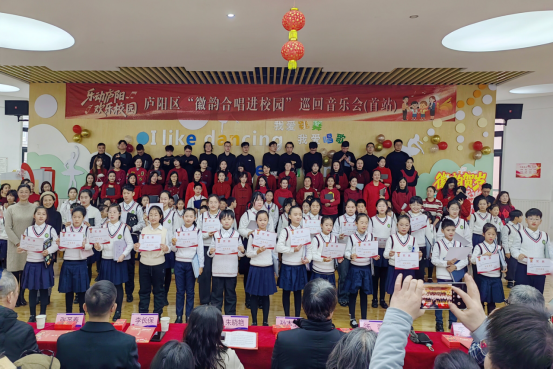 据悉,庐阳教育以“YUE动庐阳·欢乐校园”行动为统领,创新实施“大艺术”行动,着力构建“课堂+实践+展演”的全链条美育体系,让青少年在感知传统中坚定文化自信。作为巡回音乐会的首站,本次活动不仅让师生近距离领略合唱艺术的魅力,更以艺术交融与榜样表彰的双重形式,践行“传承中华文脉、丰富校园生活”的美育理念。下一步,庐阳区将继续把这种师生共同演绎的艺术盛宴送入辖区更多中小学,让徽韵文化与合唱艺术浸润更多童心,助力区域美育工作向纵深发展,让每一位孩子都能在美育滋养下健康快乐成长。