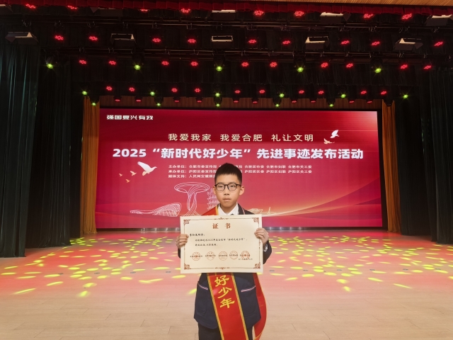 2025年12月21日,合肥市2025年“新时代好少年”事迹发布活动在合肥市南门小学森林城校区举行,经过层层推荐、专家评审和社会公示,50名市级“新时代好少年”脱颖而出。庐阳区共8名学子榜上有名,获奖总数位居全市第一。