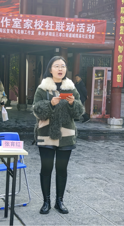 (城隍庙社区党委书记、居委会主任胡红致辞)