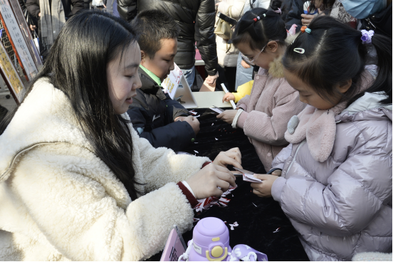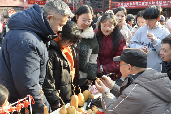 本次活动以喜迎2026年农历新年为契机,既是庐阳区美育建设丰硕成果的集中展示,更是传统技艺与新年民俗的深度融合。活动精心设置版画印福、写春联、剪窗花三大传统美术实践环节,特别引入吹糖人、葫芦烙画两项非遗技艺体验项目,邀请非遗传承人康夫利、郑小良老师现场助力,旨在让社区家庭近距离触摸非遗文化的匠心之美,亲手体验传统美术技艺的独特乐趣,在实践中弘扬中华优秀传统文化,丰富社区居民精神文化生活,让文化自信在青少年心中生根发芽。