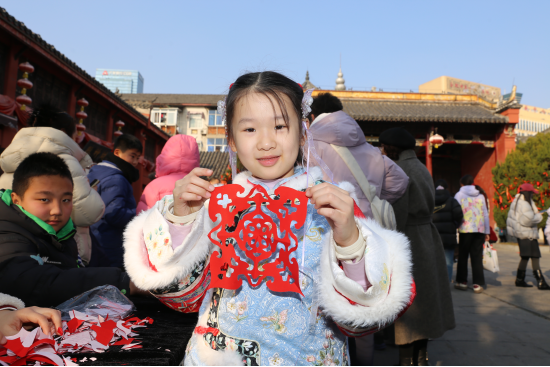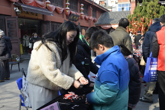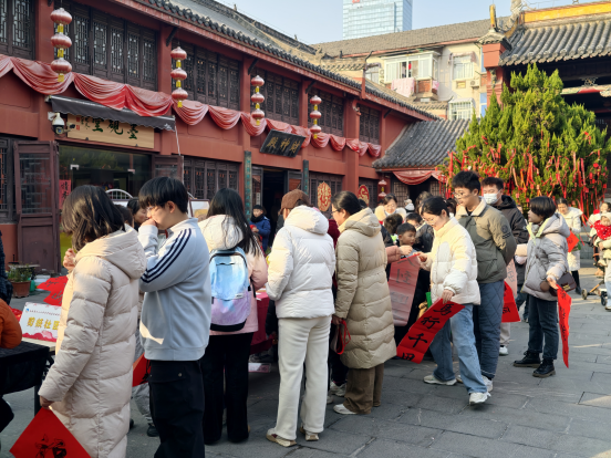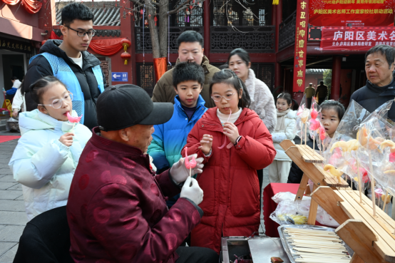 辞暮尔尔,烟火年年。为深入推进国家“美育浸润行动”与“YUE动庐阳 欢乐校园”建设,充分发挥美术名师工作室的美育辐射作用,搭建家校社协同育人桥梁,2026年1月24日下午,在庐阳区教体局教研室的引领下,庐阳区张育红名师工作室、贺弯飞名师工作室携手三孝口街道城隍庙社区党委,成功举办“YUE动庐阳迎新年 美育传情润城隍”家校社联动活动。来自城隍庙社区的30组家庭齐聚庐州府城隍庙,沉浸式体验非遗魅力,共赴一场兼具文化温度与新年气息的美育盛宴。