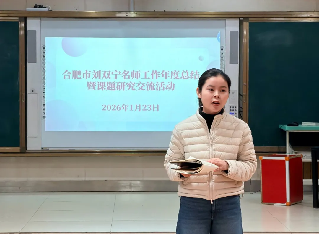 在课题交流研讨环节,合肥市育新小学樊雨童老师代表工作室作2025年度工作总结汇报。她全面梳理了工作室在课堂教学创新、教师专业成长、区域辐射引领、课题研究推进等方面取得的成果,重点介绍了围绕省级课题开展的戏剧教学融合探索、大单元教学实践以及跨区域送教活动,彰显了工作室“深耕课堂、辐射引领、教研并重、协同发展”的团队风貌。