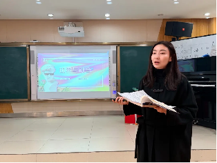 会议由合肥市第四十五中学森林城校区谢瑶老师主持,在热烈而融洽的氛围中拉开序幕。合肥市第四十二中学夏小宇老师首先进行课例分享,介绍了如何将非遗皮影戏融入初中唱歌课《化蝶》的教学设计与备课思考。合肥市梦园中学邵玲玲老师以《AI智慧赋能,舞台有我》为题,全面展示了音乐戏剧课例《灯火里的中国》的实施过程,从背景理念到反思优化,呈现了智慧课堂与戏剧教学深度融合的创新实践路径。