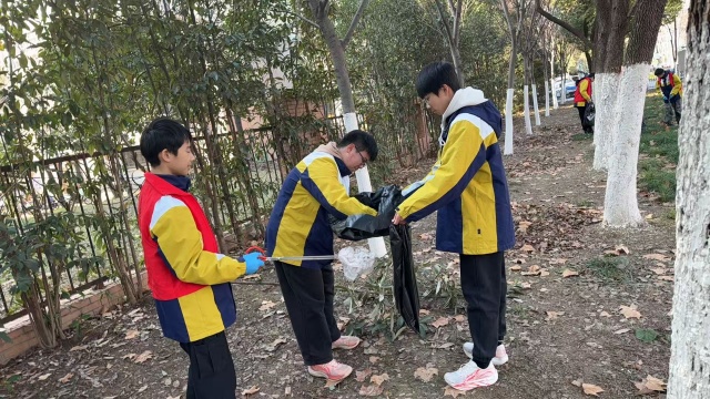 2月11日,该校三(12)中队的少先队员们走进社区广场,开展了一场以“清洁家园、喜迎新年”为主题的环境美化志愿服务活动,旨在营造干净整洁的节日氛围,培养学生的环保意识与社会责任感。队员们手持工具,认真清理路面、绿化带及水池中的烟头、纸屑等杂物,不怕脏、不怕累,用稚嫩的双手为家园“除尘焕新”。他们专注劳动的身影,成为冬日里一道温暖的风景线;用实际的行动传递文明新风,展现了新时代少先队员乐于奉献、积极向上的良好精神风貌。
