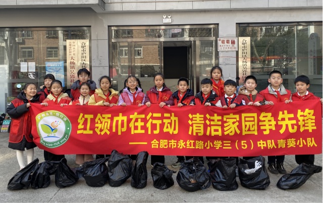 2月12日下午,合肥市六安路小学荣城花园分校一(4)中队新芽小队走进灵溪社区,开展“奉献小力量,温暖大校园”环保实践活动。队员们进入周边商户宣传垃圾分类的重要性,还手持垃圾袋,在社区绿化带、步道旁认真捡拾烟头、纸屑、塑料袋等杂物,并进行分类投放。尽管天气微凉,大家热情不减,分工协作,用稚嫩的双手为社区环境“焕新”出力。经过两小时努力,社区角落变得整洁有序,队员们脸上洋溢着自豪的笑容。此次活动让一年级队员在劳动中体会奉献的快乐,理解环保的重要意义。新芽小队用行动践行志愿精神,让“保护环境,人人有责”的种子在心中生根发芽,将温暖从校园传递到更广阔的社会。