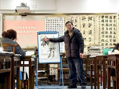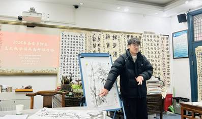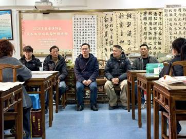 国画高研班开班仪式圆满结束后,贺弯飞美术名师工作室紧接着召开2025年度总结暨新学期工作布置会,区教体局教研室相关人员全程参与指导。工作室领衔人贺弯飞老师全面回顾了2025年1月至2026年1月的工作成效,过去一年,工作室在区教体局的引领下,扎实开展各类教研、交流、帮扶、展示活动等20场,涵盖新教材课例展示、跨区域交流、送教下乡、“家校社”联动、非遗宣传等多元场景,同时成功完成1项市级课题立项研究,工作室微信公众号发布文章29篇,形成了“深耕教材、辐射引领、融合创新”的良好发展态势。区教体局对工作室过去一年的工作成效给予充分肯定,并结合区域美育发展需求,对工作室新学期工作提出进一步要求,希望工作室持续发挥辐射引领作用,带动更多美术教师专业成长。