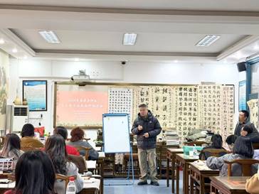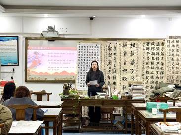传统非遗文化是美育教学的重要载体,也是传承中华优秀传统文化的关键抓手。为持续推动非遗进校园、进课堂,丰富区域美育教学内容,双岗小学王鹏老师带来篆刻专题讲座。王鹏老师立足传统篆刻艺术的章法布局、字法搭配与刀法运用,系统讲解篆刻创作的核心要领与审美规范,同时紧密结合校园美育教学实际,分享了将篆刻非遗技艺与课堂教学、学生社团活动有机融合的实践案例,为全体学员提供了可借鉴、可落地的教学思路,进一步拓宽了美术教师的教学视野。