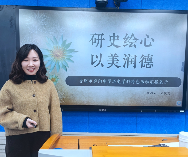 会议在合肥市庐阳中学卢雯雯老师的微讲座《研史绘心 以美润德》中拉开帷幕。卢老师以本校历史学科节特色活动为例,分享了“匠心仿制”“艺绘荣光”“墨笔春秋”等跨学科主题实践成果,展现了历史学科以美育人、以情润德的独特魅力,为与会教师提供了学科活动创新设计的生动范本。