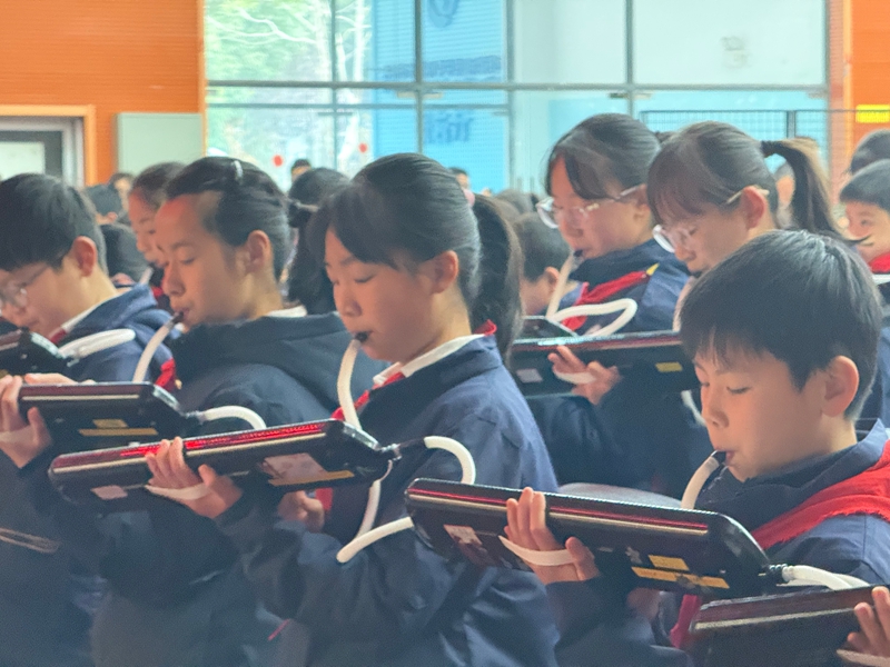 随后,第三届课堂乐器评比交流分享环节精彩上演:长二小王玥老师带来《北京喜讯到边寨》的器乐演绎,六小薛扬燕老师展示《铁匠波尔卡》的灵动节奏,45中菱湖校区曹润玉老师奏响《外婆的澎湖湾》的温情旋律,45中李振志老师则以一曲《灯火里的中国》传递家国情怀,四位教师的分享充分展现了全区器乐教学的多元探索与扎实成效。